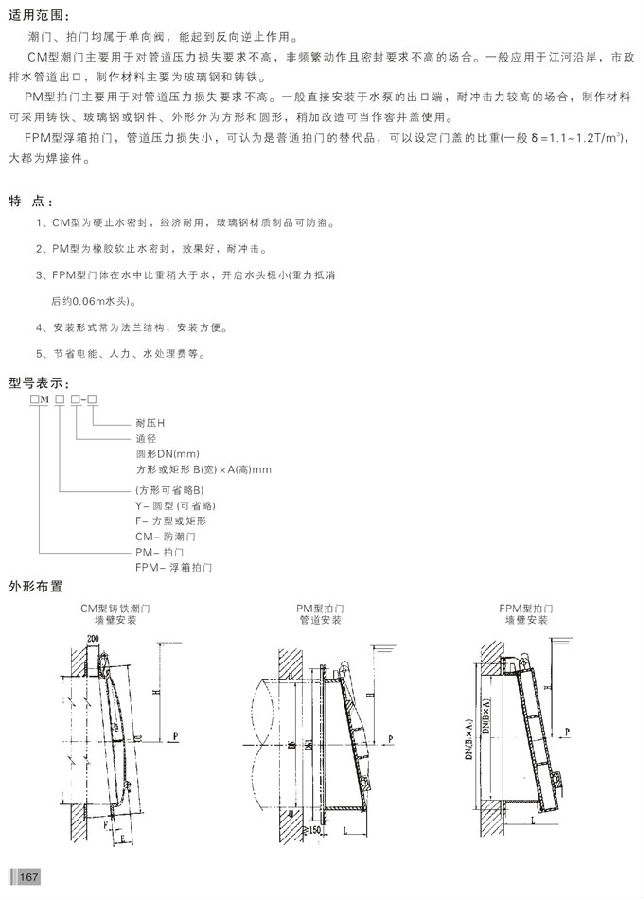 拍門適用介質:適用于江河岸排水管出口處的一種單向閥
